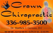 Dr. Matthew Germini, D.C. and Crown Chiropractic of King won "BEST CHIROPRACTOR" by Stokes County Readers Choice for: 2012, 2013, 2014, 2015, 2016, 2017, 2018, 2019, & 2020